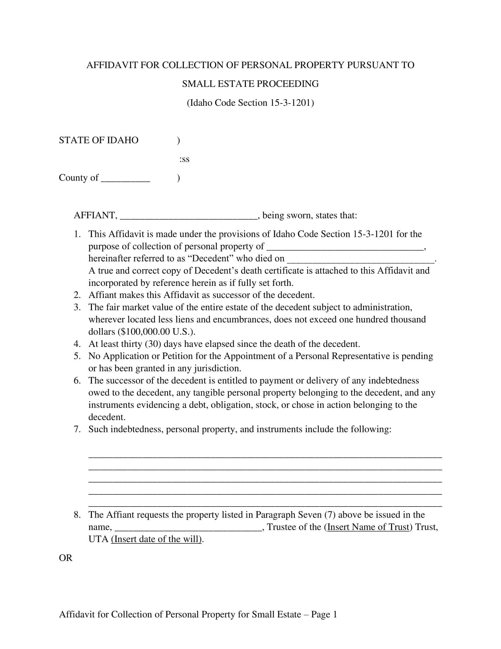 Let’s have a look at the details you’ll be required to fill in for a tiny estate testimony: